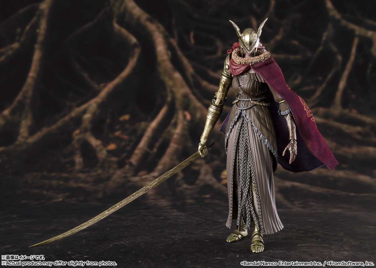 Segunda figura de la serie «ELDEN RING» de S.H. Figuarts. Incluye una amplia variedad de piezas opcionales, incluyendo una espada. Se pueden recrear escenas del juego estilizando su capa con alambres integrados. Incluye don manos izquierdas, piezas de espada protésica para la mano (con pieza para la muñeca derecha), falda con abertura y pedestal exclusivo.