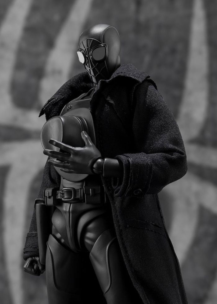 El abrigo de SPIDER-MAN NOIR está hecho de tela, lo que permite recrear diversas poses dinámicas. Para recrear diversas secuencias de acción cómicas, SPIDER-HAM incluye varias piezas intercambiables.
